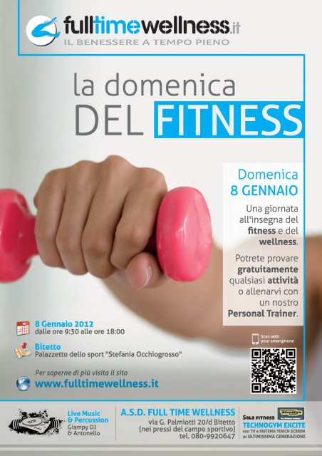 Domenica 8 Gennaio a partire dalle ore 10 fino alle 18 presso il palazzetto dello sport di Bitetto in via Marconi, abbiamo organizzato un intera giornata dedicata al FITNESS. Infatti potrete provare gratuitamente i vari corsi di fitness che si svologono in palestra: PILATES, ZUMBA, TOTAL BODY, GAG, STEP, AEREOKOMBAT, SPINNING, MUHAY THAI, KARATE o allenarvi con i nostri PERSONAL TRAINER oppure usufruire gratuitamente del nostro medico nutrizionista per scoprire il vostro IBM (indice di massa corporea) o effettuare dei test della postura.